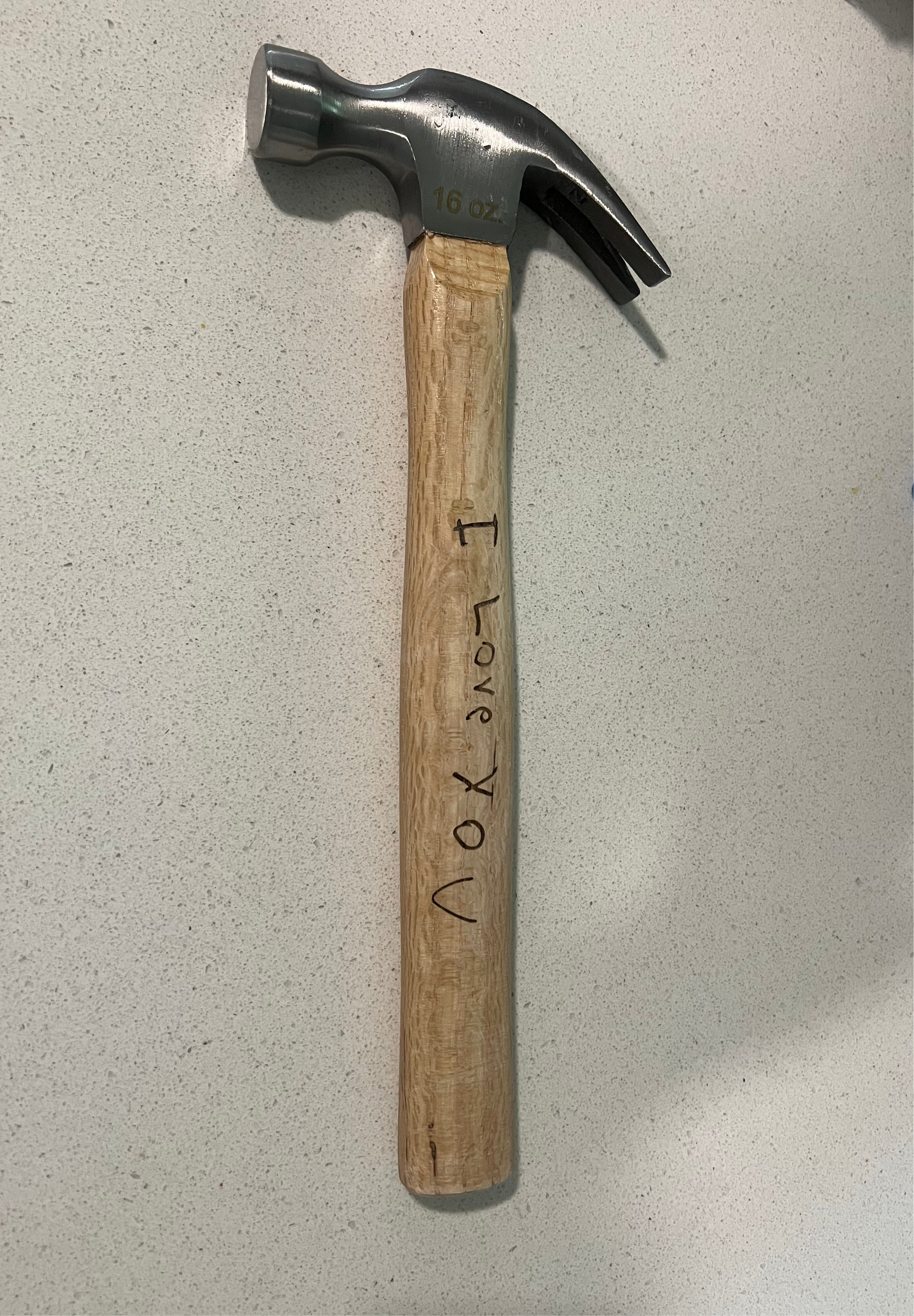 Wooden hammer with laser engraved personalized message. Personalized message can be handwritten or use of basic font. We will work with you to pick font or send handwritten message. Great to hang in garage or workshop!